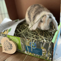 As mentioned earlier, when your rabbit flops or does zoomies, it usually means they trust and cherish you. The best approach is to have fun and bond with them. There are plenty of ways to connect – gentle pets while putting them to bed, rewarding them with their favorite treats, or satisfying their natural instincts with DIY activities such as cardboard boxes or paper bags with holes punched out; filled with hay and forage goodies. You can also play gentle games like tug-of-war using rabbit-safe toys. These moments not only strengthen your bunny's trust but also keep your bunny happy and mentally stimulated.